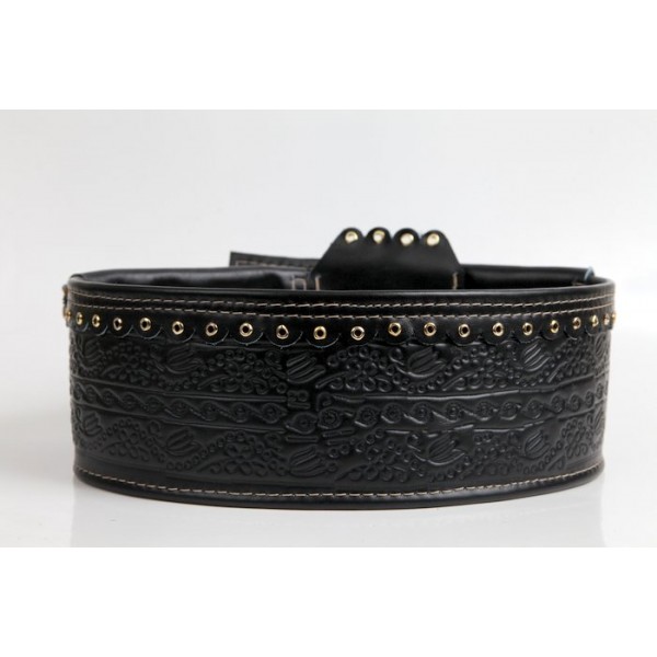 Chimirul este confectionat din piele de bovina tabacita vegetal, culoare neagra.