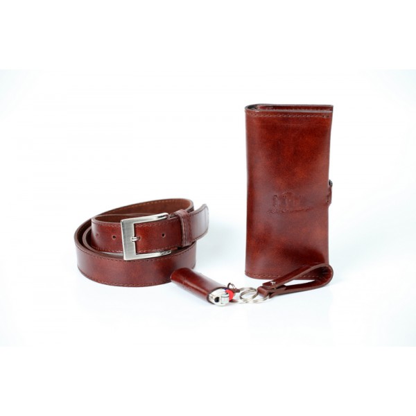 Set produse piele format din portofel unisex, curea din piele naturala, breloc chei si bricheta in husa piele. Setul se mai poate adapta dupa preferintele dumneavoastra.