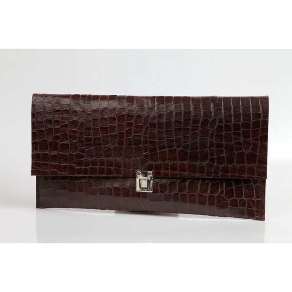 Plic din piele naturala de culoare maro cu imprimeu croco. In interior un singur compartiment. Dimensiuni: 37/19 cm.